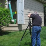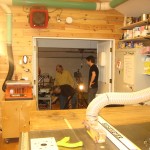 After lunch, the morning clouds had dissipated and we were enjoying a gorgeous, sunny afternoon. One of the shop’s features I’m most pleased with is its external dust collection closet. By keeping the monster in it’s own heavily-insulated cell, both me and my neighbors are spared the bulk of the noise generated by its 3HP motor and the resulting rush of air. Shots of the way the shop and this system integrate into my modest suburban home were next on our list.