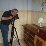 After a couple “welcome” shots of me standing in the entryway, Mike shot some overviews of the shop. While I’m not completely unaware of modern photography, I’d never before realized just how effective a good wide angle lens could be. My shop is only 14′ x 22′. In the past when I’ve attempted to capture a general “overview” of the space, I’d been frustrated by my inability to get much of the shop “in the shot” from within. Typically, when I think of a “wide angle” lens, highly distorted images come to mind. I think “fish-eye”. Consequently I was seriously amazed at how he could include all of the machines on the North wall in a shot with the camera aimed mainly west/northwest, with no obvious distortion. Brilliant! They then moved on to close shots highlighting some of the specific fixtures Jim plans to highlight in the article.